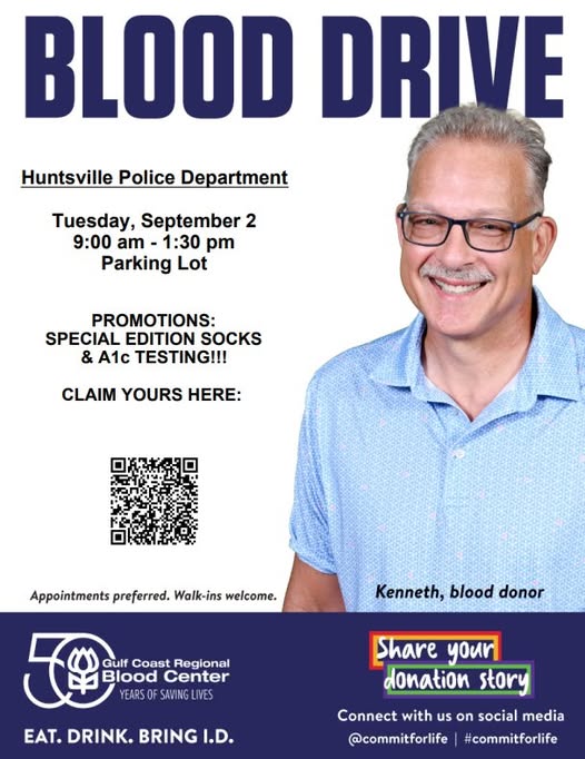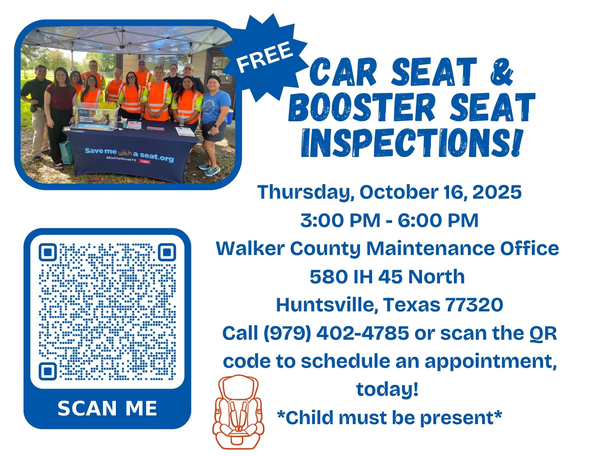 The event will be held at the Walker County Maintenance Office, located at 580 IH 45 North, Huntsville, Texas 77320. Please scan the QR code or call (979) 402-4785 to schedule an appointment. Limited appointments available. Children must be present.